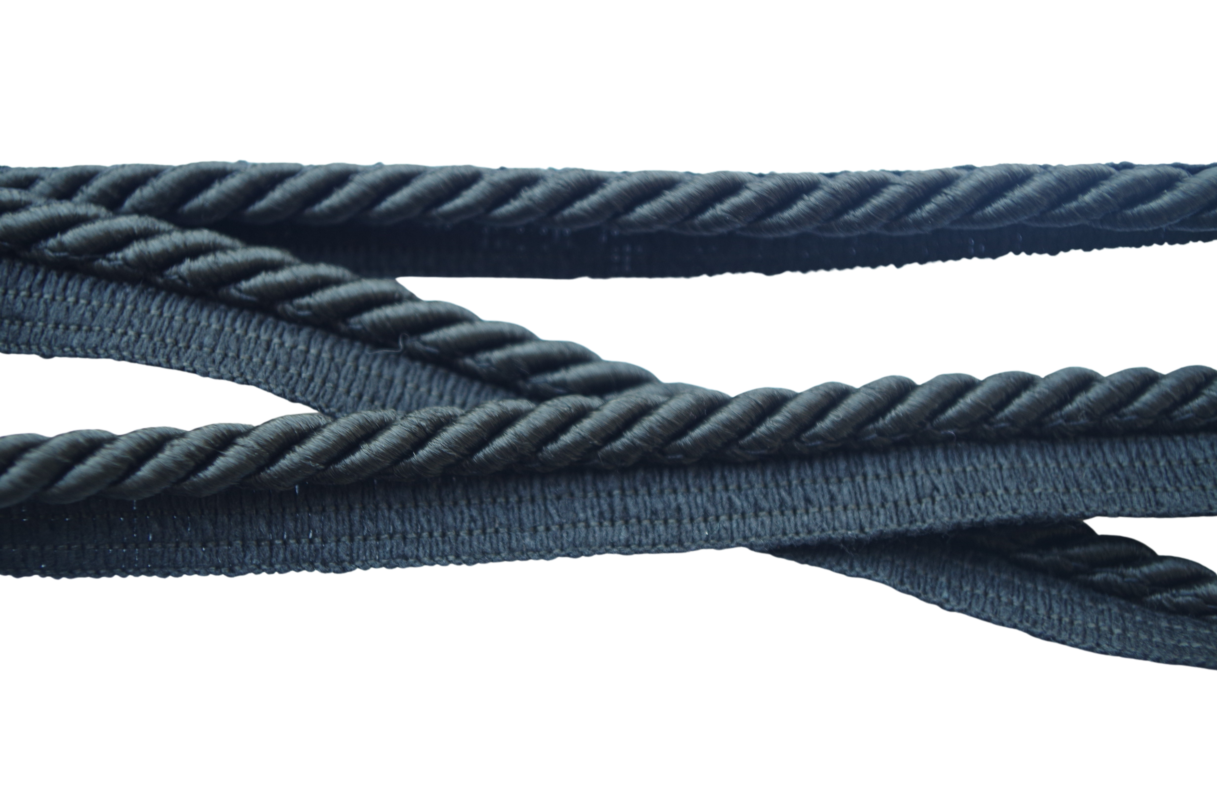 Sznur dekoracyjny w kolorze czarnym, z lekkim połyskiem.