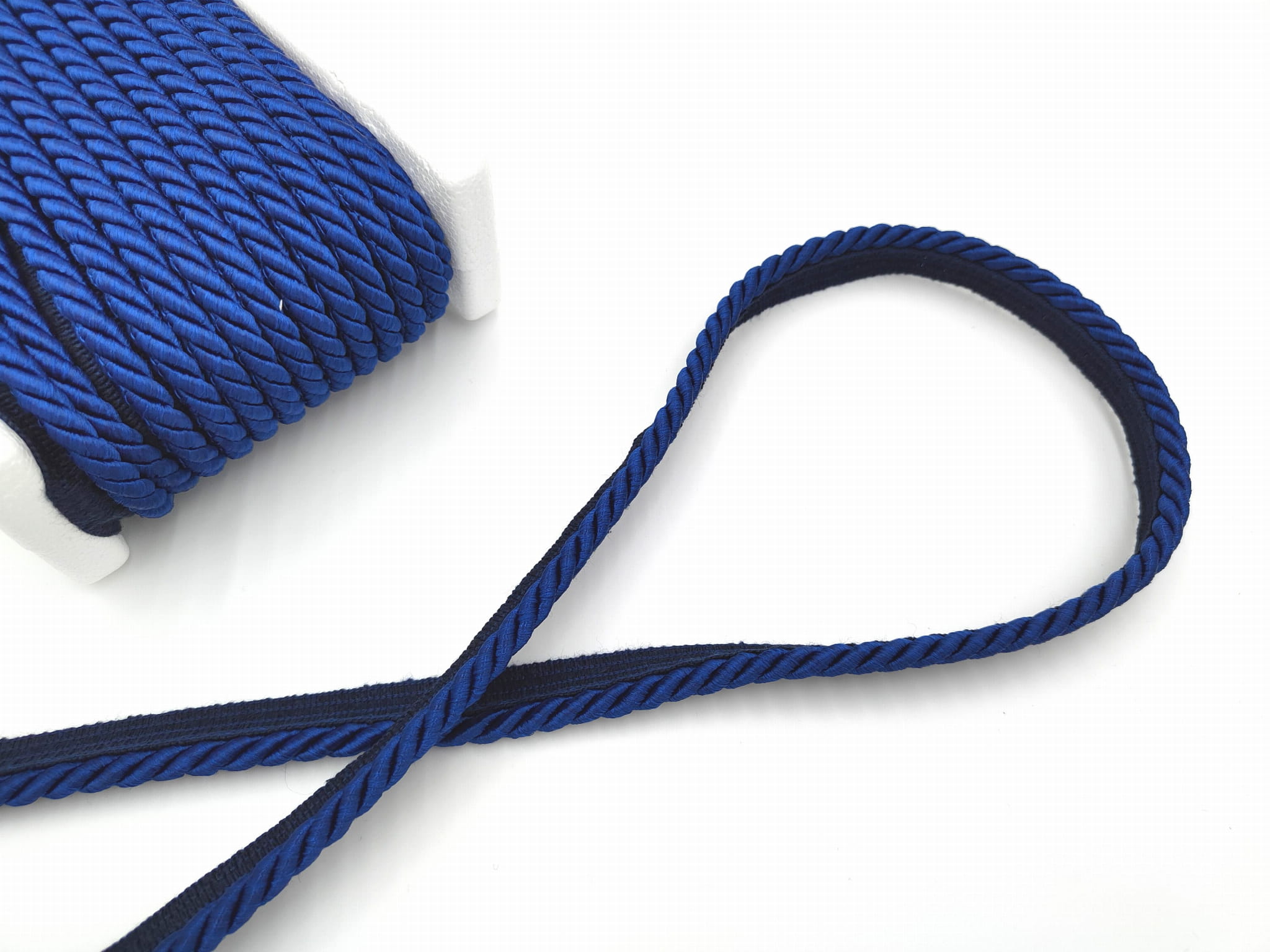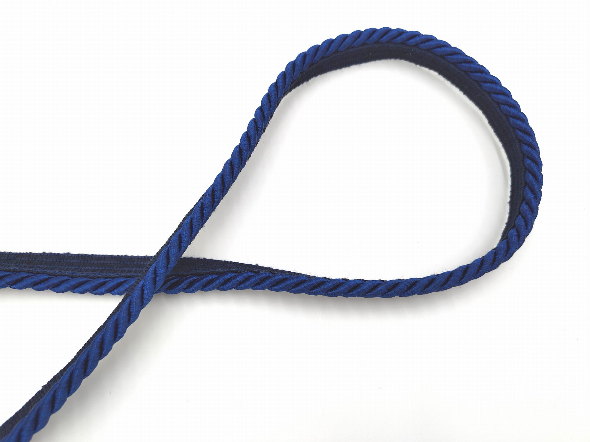 Sznur dekoracyjny w kolorze granatowym, z lekkim połyskiem.