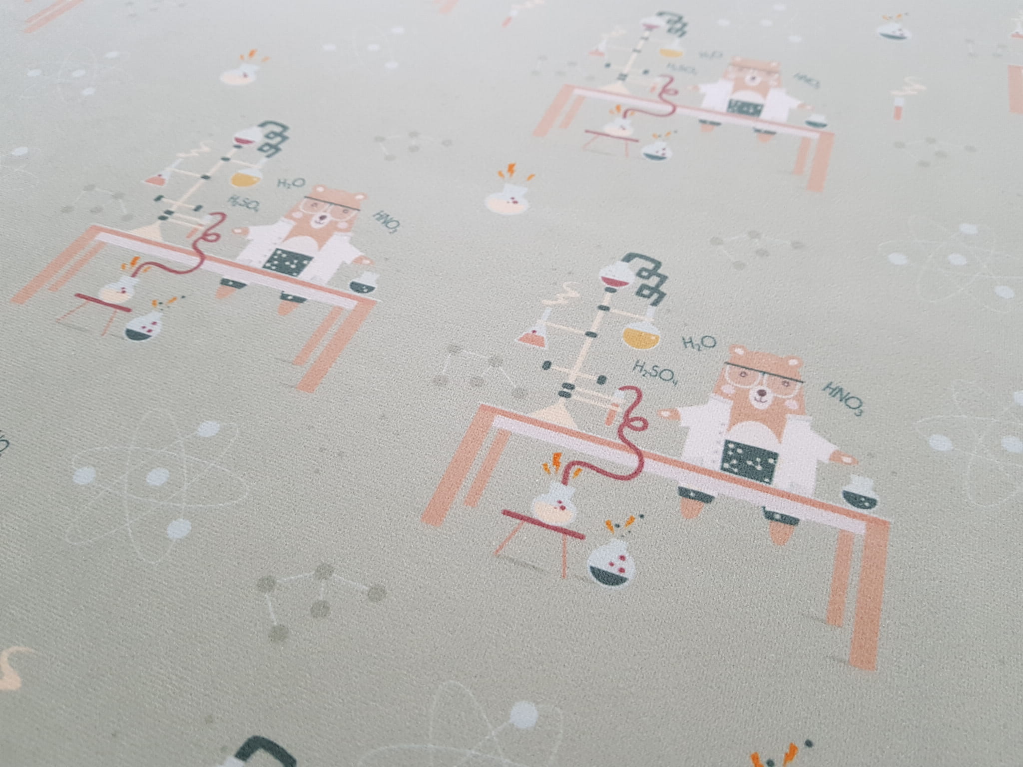 Tkanina tapicerska welur drukowany z nowoczesnym wzorem idealnym dla dzieci.