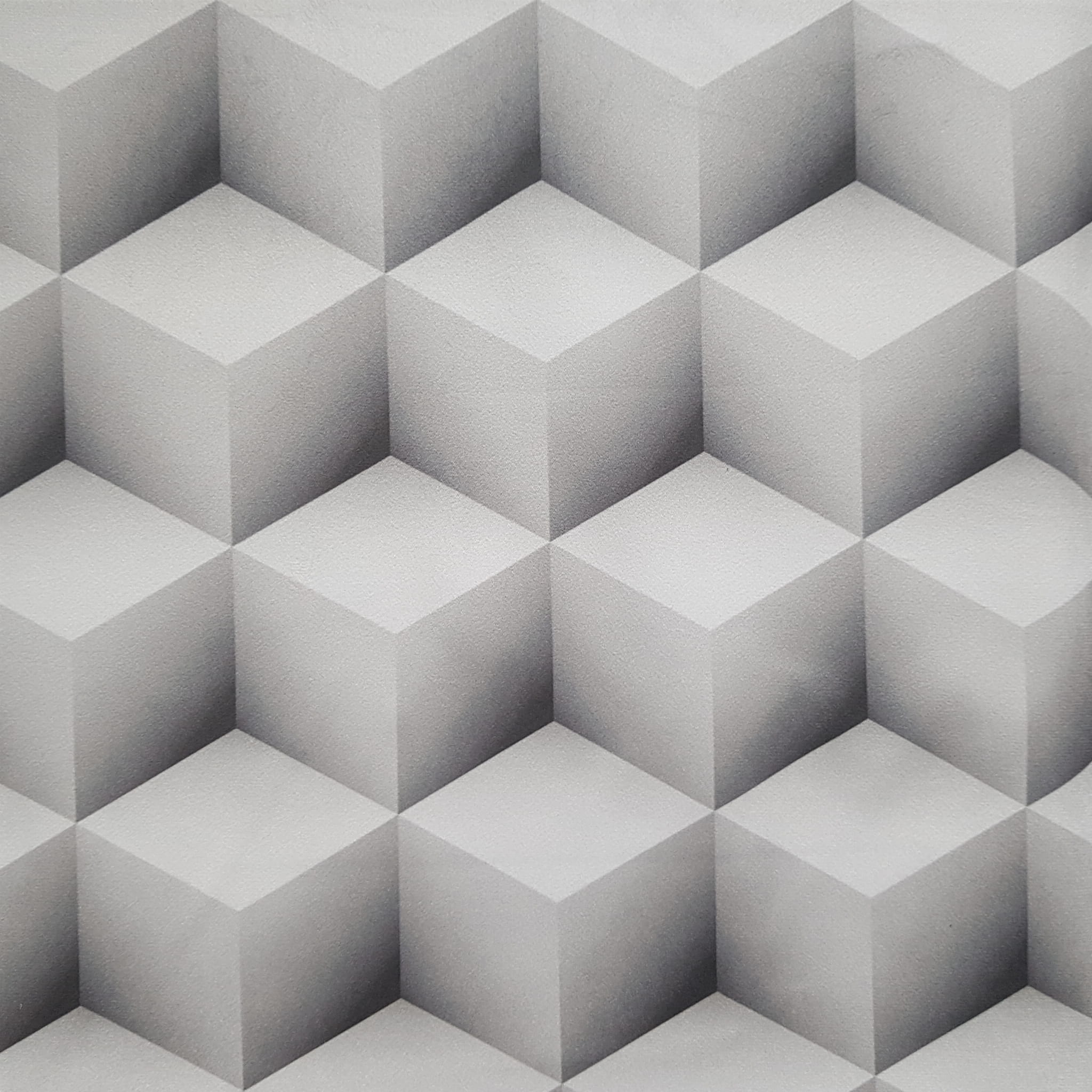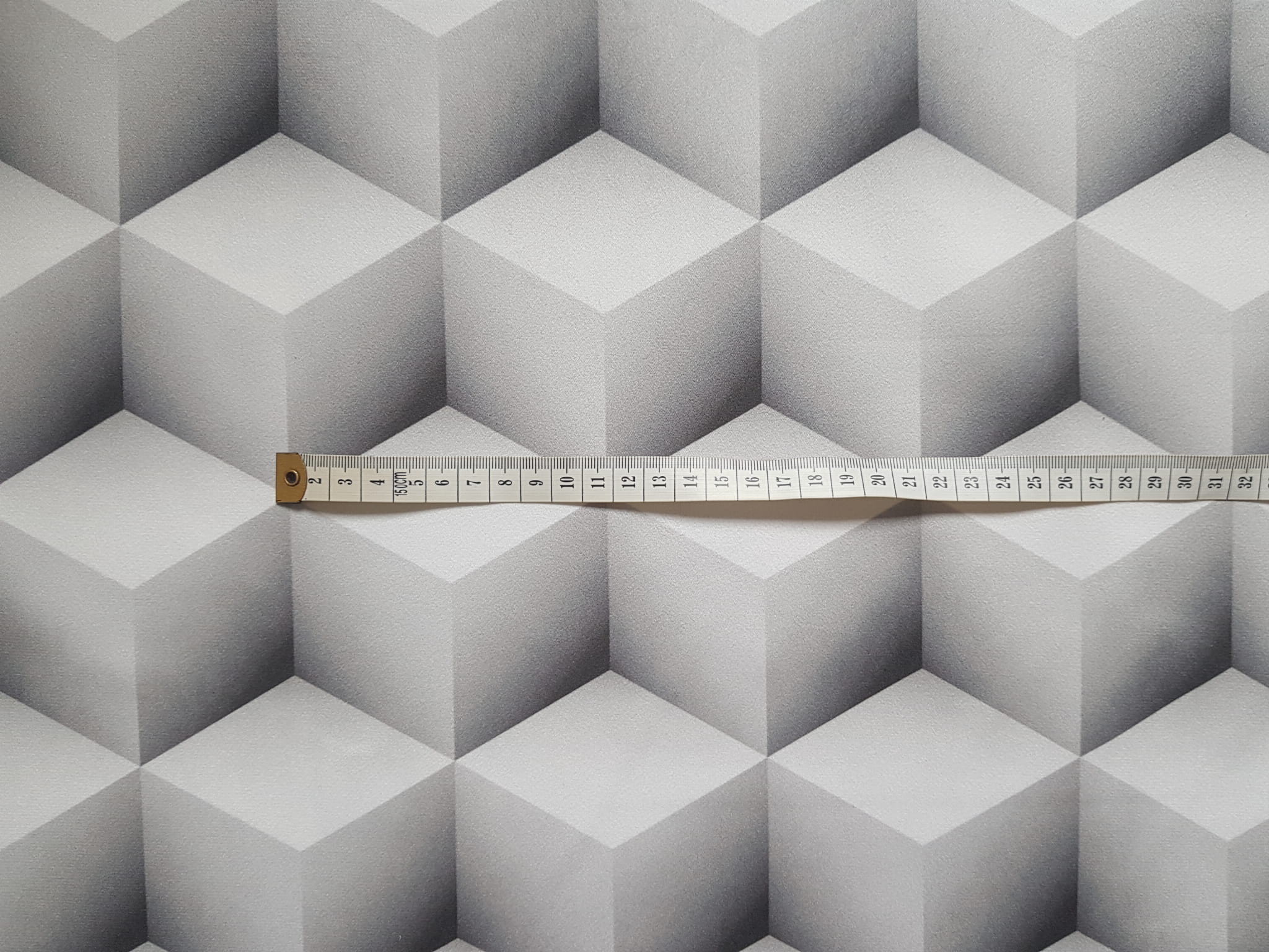Tkanina tapicerska welur drukowany z nowoczesnym wzorem geometrycznych kostek w wersji 3D.