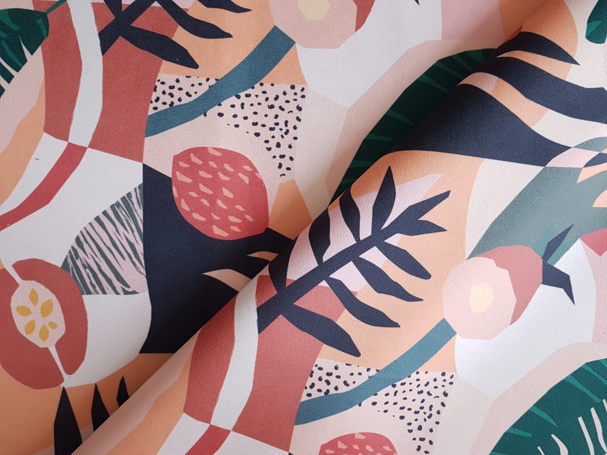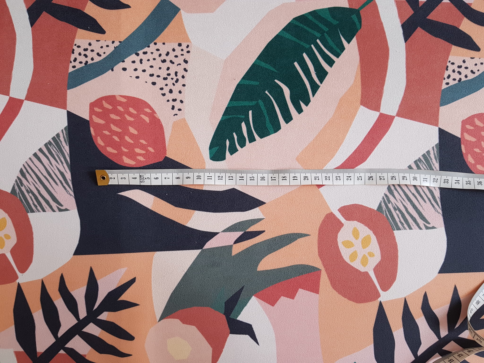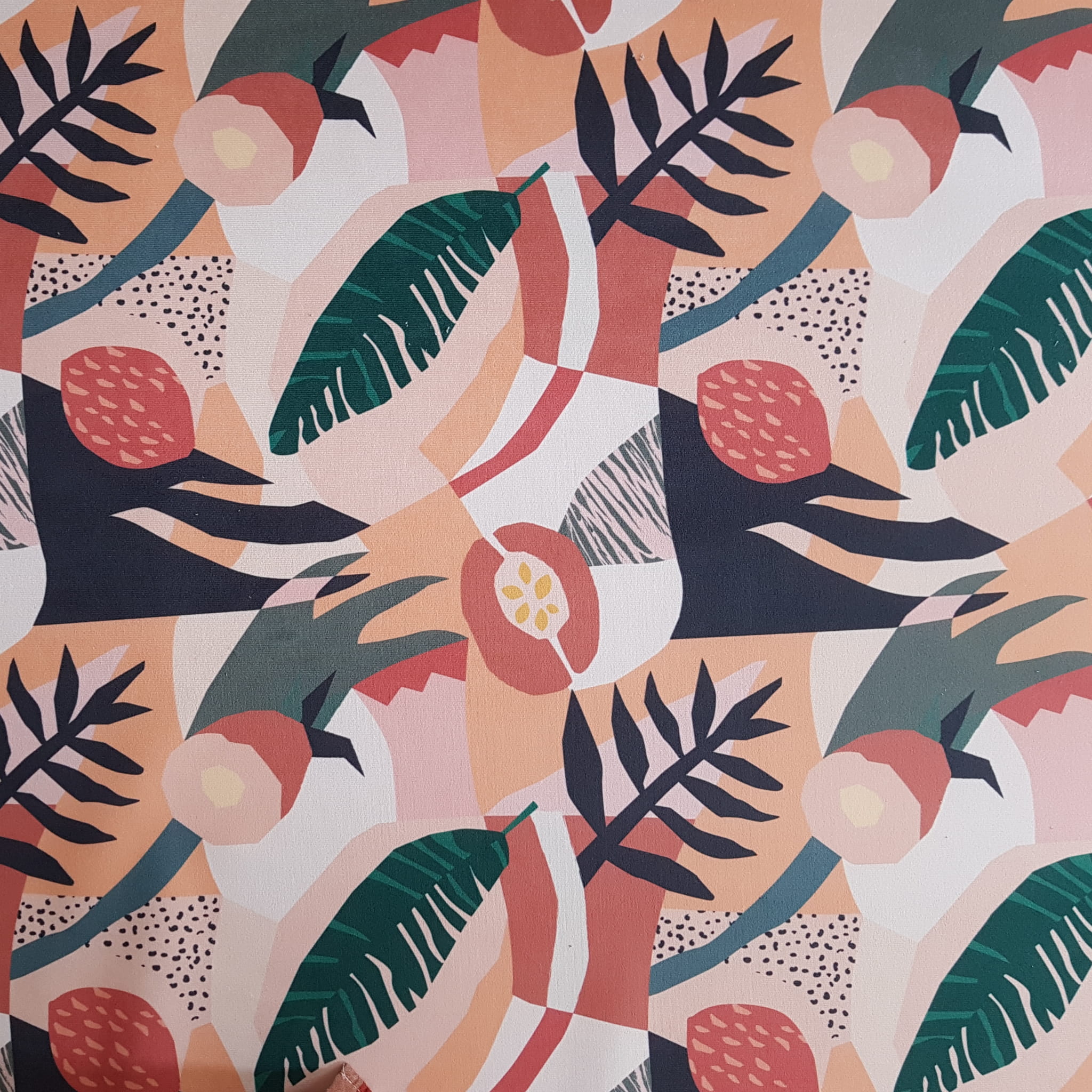 Tkanina tapicerska welur drukowany z niezwykle egzotycznym wzorem papaja w wakacyjnych barwach.